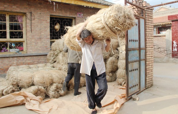 (秦亭鎮(zhèn)麻農(nóng)正在剝麻皮)