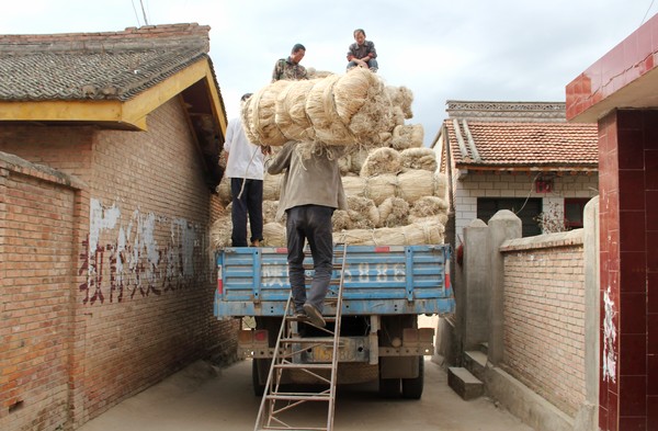 記者來到秦亭鎮(zhèn)大麻收購點,一副忙碌的場面映入眼簾,一捆捆大麻碼得整整齊齊,村民們正忙著將大麻整裝上車。