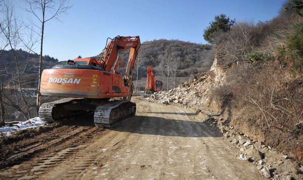 (山門(mén)至玄頭通村道路已拓寬的路基)