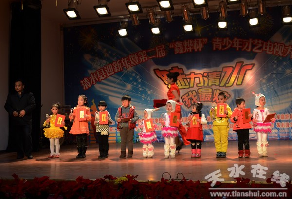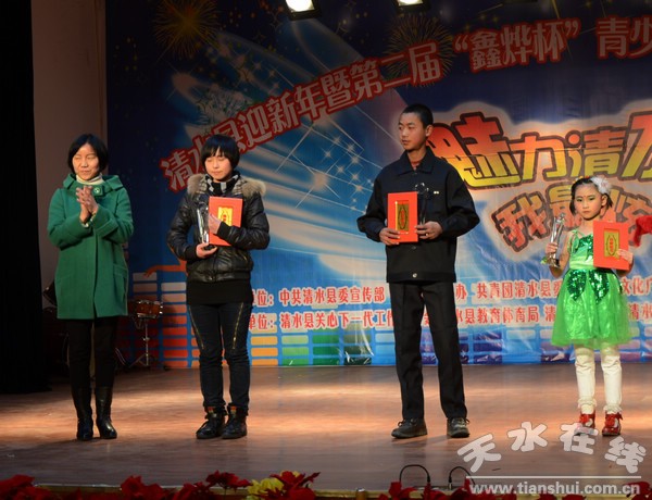12月25日,在元旦即將來臨之際,清水縣溫泉度假村多功能廳華燈溢彩,霓紅閃爍,暖意融融,清水縣迎新春暨第二屆“鑫燁杯”青少年才藝電視大賽頒獎(jiǎng)典禮在這里隆重舉行。