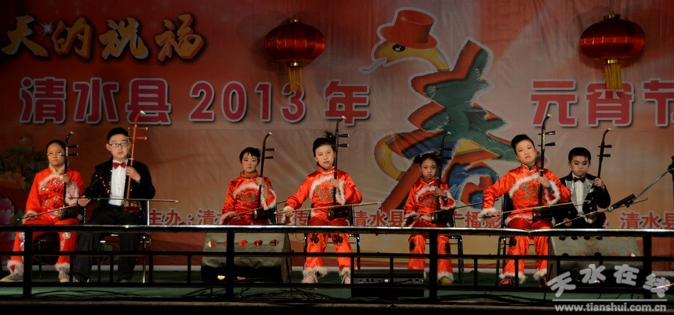 金蛇飛舞賀新春,載歌載舞鬧元宵。2月24日晚,由清水縣委宣傳部、縣文廣局主辦,縣文化館承辦的“春天的祝福清水縣2013年元宵節(jié)綜藝晚會”在政府廣場精彩上演,豐富多彩的文藝匯演給全縣人民營造了一個歡樂、祥和的節(jié)日氛圍。