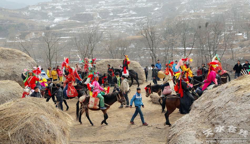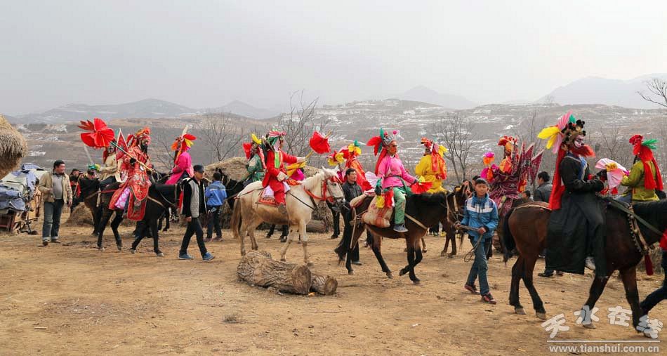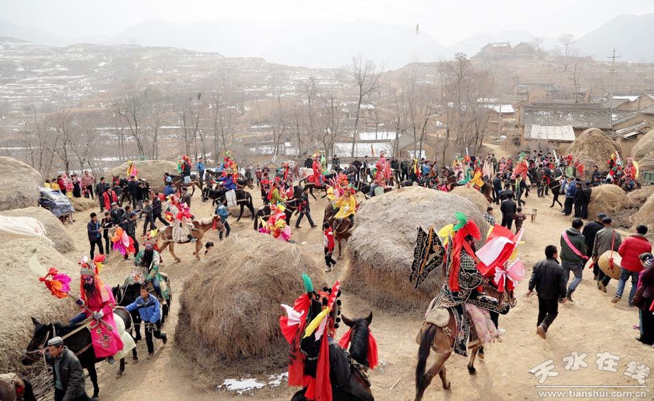 2月15日(農(nóng)歷正月十六日)中午,天水在線一行走進(jìn)清水縣白沙鄉(xiāng)太石村拍攝馬社火表演 。 太石村馬社火,歷史悠久,具有濃厚的地方特色,在清水享有盛名。每年正月初九、十五日和十六進(jìn)行表演。