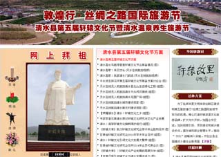 敦煌行•絲綢之路國際旅游節(jié)清水縣第五屆軒轅文化節(jié)暨清水溫泉養(yǎng)生旅游節(jié)茲定于2015年6月14日至7月15日期間舉辦,目前,清水縣夏季物資交流大會暨興盛家居建材商貿(mào)城運營活動已全面啟動,其余各項籌備工作正有序開展。