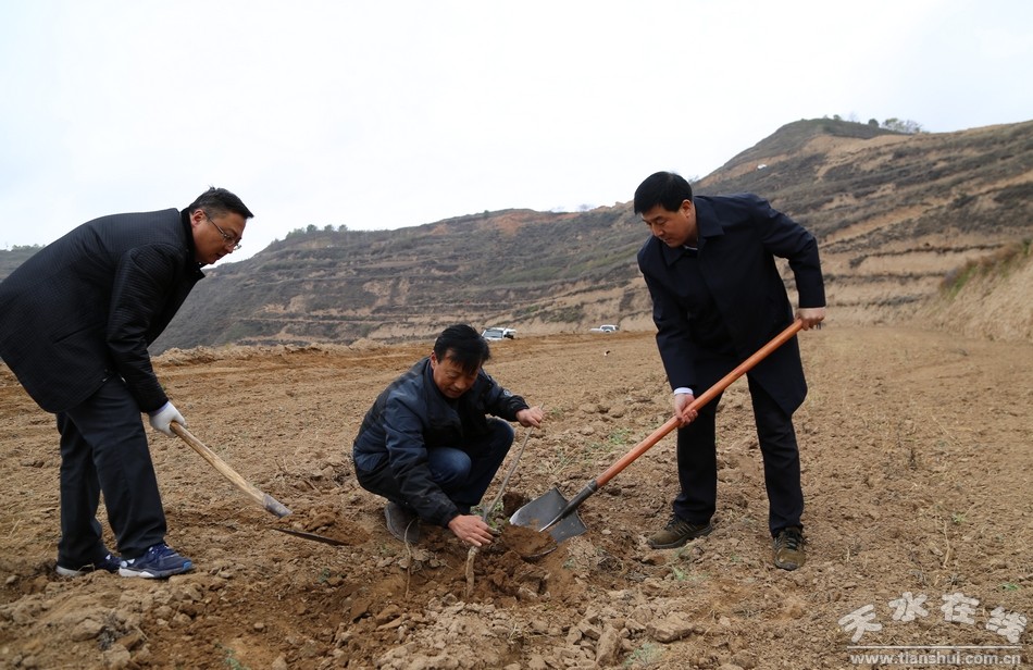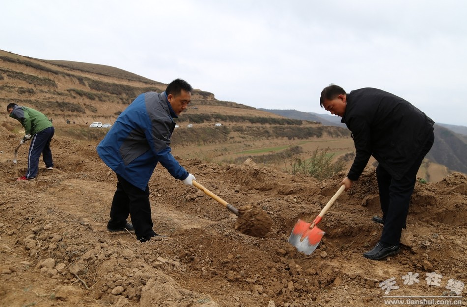11月3日,清水縣規(guī)劃的又一個萬畝干鮮果示范點----蒲魏梁萬畝核桃基地建設工作正式啟動?h委書記劉天波,縣人大常委會主任趙云清,縣委副書記、縣政協(xié)主席王新強,縣委常委、紀委書記馬利民,縣委常委、宣傳部長張秀麗,縣委常委、組織部長周濟,縣人大常委會副主任宋宏亮、趙愛平,副縣長楊泉、秦永斌、楊慶森,縣政協(xié)副主席李應祥等縣四大組織在家領導與縣直機關和事業(yè)單位的2600多名干部職工及數(shù)百名當?shù)厝罕娨坏绤⒓恿肆x務幫建核桃園活動。