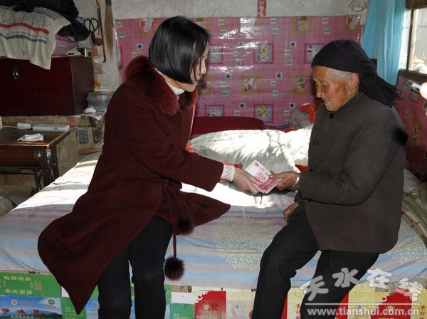 清水縣開展一系列送溫暖慰問活動(dòng),足跡遍及清水縣大街小巷、每個(gè)村落,慰問了駐地官兵、困難農(nóng)戶、五保老人、二女戶、高齡老人、殘疾人、困難黨員、困難職工、優(yōu)秀人才、道德模范、“清水好人”及退休老干部,逐戶逐人把棉被、大米、食用油等物資和節(jié)日慰問金送到他們手中,并向他們致以節(jié)日美好的祝福。“最近天氣冷,一定要注意保暖,不要感冒了,”“常年來,你們不辭辛苦,夏頂烈日、冬冒嚴(yán)寒,為提升縣城品位、改善人居環(huán)境做出了巨大的貢獻(xiàn),感謝你們”“快過年了,祝愿你們身體健康、生活愉快、家庭幸!,一句句問候,一聲聲叮囑,讓大家深深地感受到黨和政府與社會(huì)大家庭的關(guān)愛與溫暖。