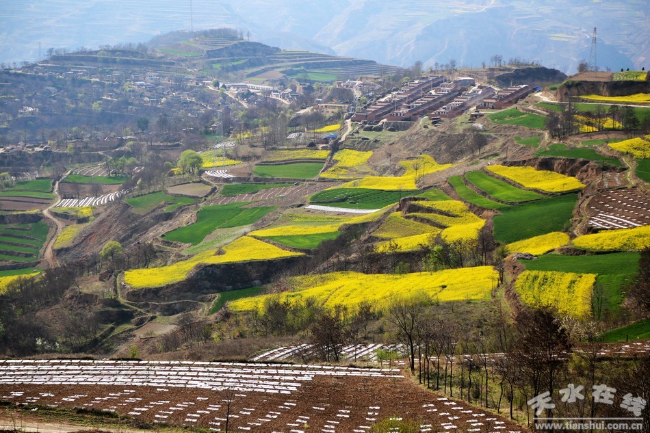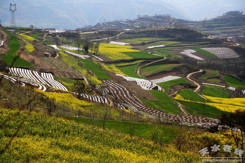 綠遍山原白滿川,子規(guī)聲里雨如煙。鄉(xiāng)村四月閑人少,才了蠶桑又插田。清水四月的村莊里、原野間草木茂盛,村莊四周翠綠的麥苗、金黃的油菜、露出嫩芽的核桃樹、白白的玉米膜與天光交相輝映,滿目亮白。農(nóng)民也都開始忙起了農(nóng)活,村里沒有一個人閑著,鄉(xiāng)村的四月寧靜中透著勞動的緊張、繁忙,讓人陶醉其中。