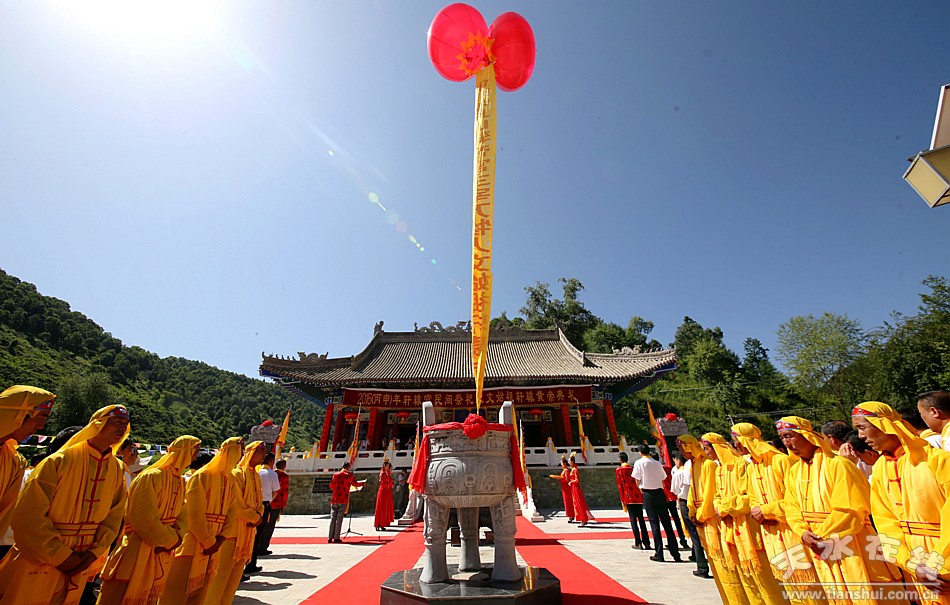 7月16日上午,清水縣民間人士在山門鎮(zhèn)軒轅谷舉行了隆重的祭祀人文始祖軒轅黃帝典禮。2016(丙申)年軒轅宮民間祭祀軒轅黃帝活動由山門鎮(zhèn)白河村主辦,甘肅省軒轅文化研究會、清水縣民族宗教局和山門鎮(zhèn)人民政府協(xié)辦。祭祀的主題是:緬懷人文始祖、振興中華民族。