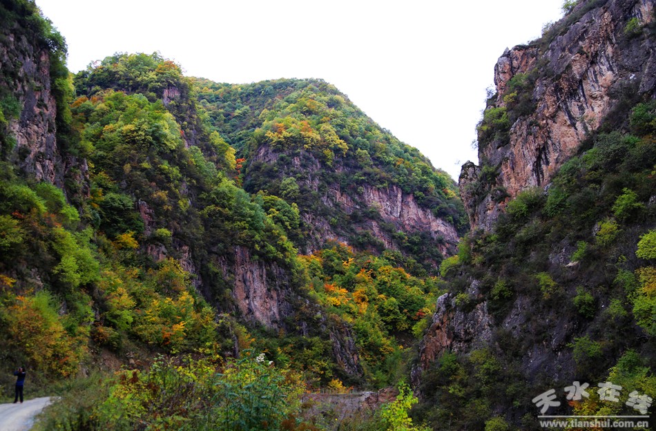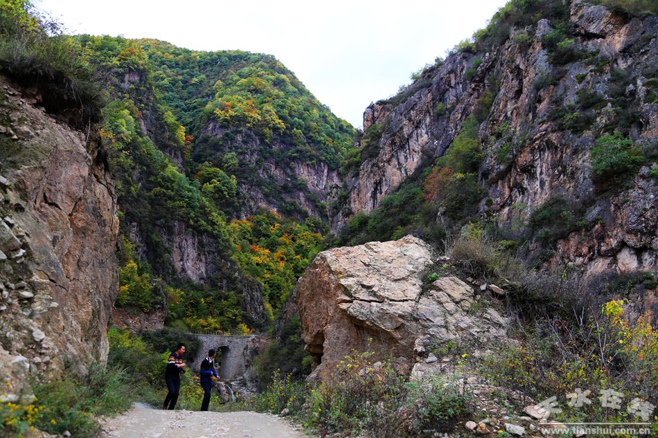 近日,筆者一行來到小譚溝,首先映入眼簾的是一座座山峰,高低不平,雄偉壯觀,山路蜿蜒,不寬的路徑,兩邊青草,野花,樹木,高高低低,錯落有致。山溝里,水是清澈的,風是質樸的,山上的花花草草被秋分涂抹的色彩斑斕,一片黃、一片綠、一片紅……,眼前好像一幅風景畫,這是多么美麗的風景啊。