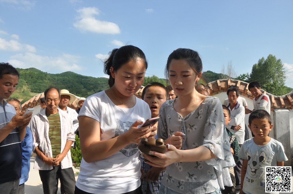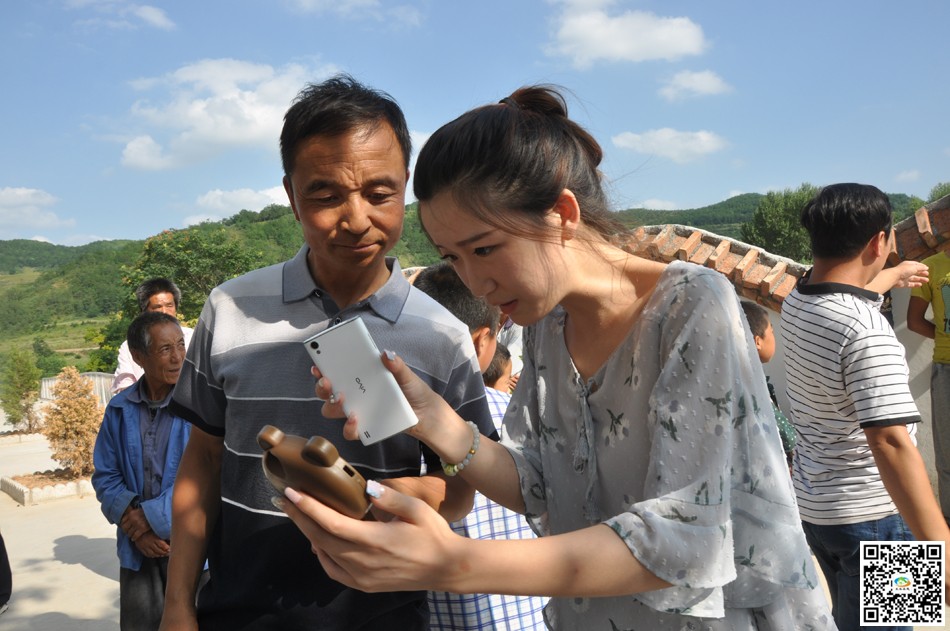 ▲圖為天水在線小編為秦亭村村民講解微信直銷自家青皮核桃的方法