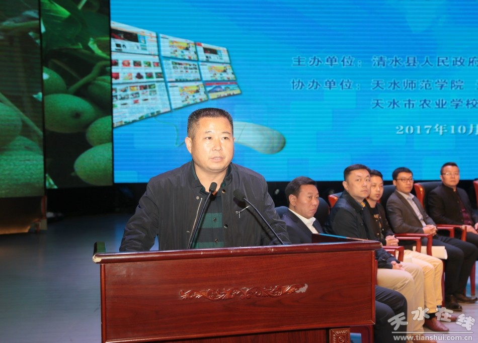 省商務廳電商處副處長孔軍在致辭中指出,清水縣初步探索出了以院縣合作、名人代言、專家指導、領(lǐng)導主抓、干部助力、全民參與、媒體推廣、微信直銷、多平臺運作、統(tǒng)一監(jiān)管服務、“1+1+N”人才培訓等為主要特點的電商扶貧“清水模式”,為全省貧困縣區(qū)開展電商扶貧工作積累了可復制、可推廣的好經(jīng)驗、好模式。