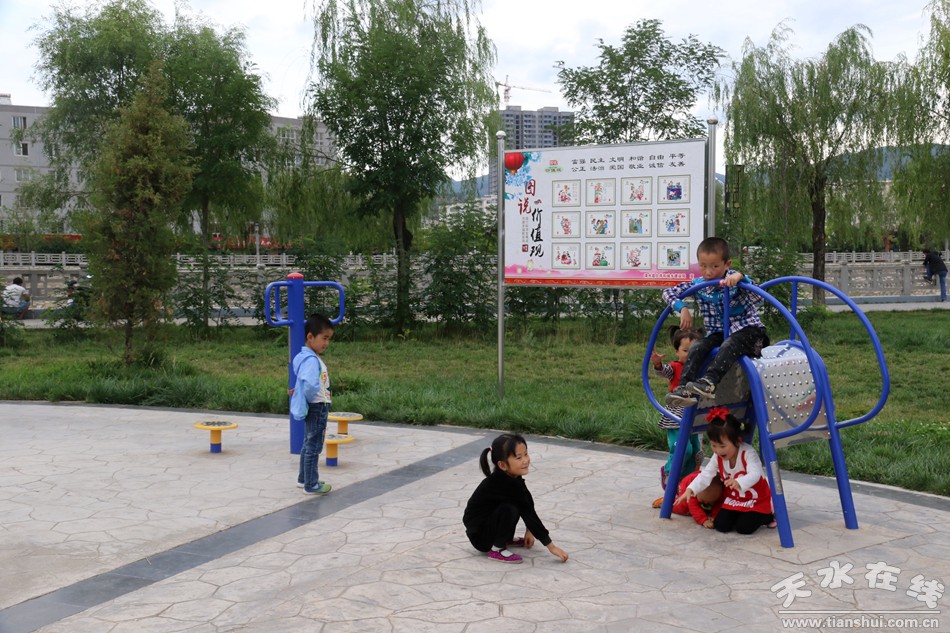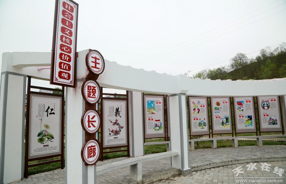 在城區(qū)“一街一場(chǎng)”創(chuàng)建方面。作為市民休閑娛樂(lè)、鍛煉聚集的主陣地,我們以“圖說(shuō)我們的價(jià)值觀”、“講文明樹新風(fēng)”公益廣告、中華有福、24孝等,充分利用燈桿道旗、花壇路牌、建筑圍擋、居民圍墻打造了軒轅大道、上邽大道及縣城所有主次干道等核心價(jià)值觀主題示范街,并在中山路建成好人一條街;著力打造軒轅廣場(chǎng)、充國(guó)廣場(chǎng)、火車站廣場(chǎng)為核心價(jià)值觀主題廣場(chǎng),在廣場(chǎng)建成核心價(jià)值觀景觀24處,使人民群眾對(duì)社會(huì)主義核心價(jià)值立足即觀、抬眼即見(jiàn)。