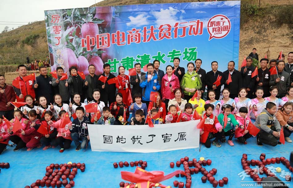 11月4日,中央電視臺財經(jīng)頻道聯(lián)合國內(nèi)30家網(wǎng)絡(luò)直播平臺同步直播“厲害了我的國·中國電商扶貧行動清水專場”在清水縣遠門鎮(zhèn)夜明村蘋果園內(nèi)進行。直播當天,夜明村蘋果園內(nèi)歌聲四起,歡笑回蕩,軒轅鼓舞、采摘蘋果比賽、清水小曲、有獎問答、秦腔演唱、木人摔跤和為本次活動編排的快板《夸蘋果》等節(jié)目一一上演,村民們用載歌載舞的方式,表達著慶豐收的喜悅。這次直播活動火了清水,火了清水蘋果,也火了清水電商。這枚由清水縣委書記親自代言的“明星果”,一夜之間刷爆了朋友圈,走進全國各地朋友們的視線…