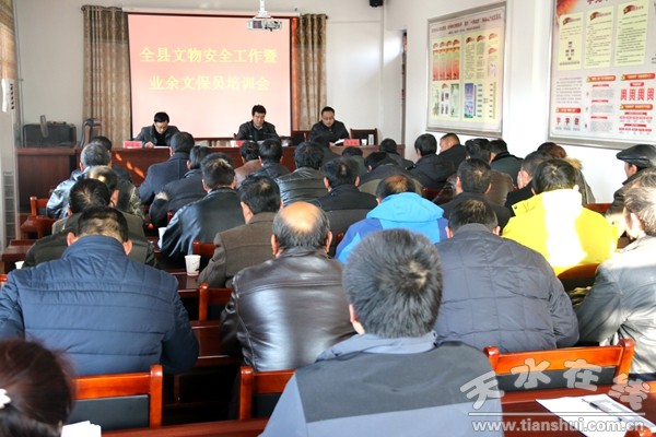 為了深入貫徹落實黨的十九大報告精神,正確分析和把握當前文物工作安全形勢,加強文保員隊伍建設,12月19日至20日,文物局分兩期組織召開了清水縣文物安全工作會議暨文保員培訓會。參加此次會議的人員有全縣18個鄉(xiāng)鎮(zhèn)的文化站長、18鄉(xiāng)鎮(zhèn)業(yè)余文保員和文物局的全體工作人員。