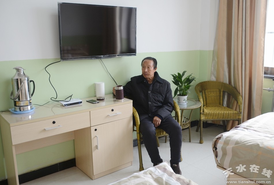 在宿舍里面,草川鋪鎮(zhèn)磨兒村一組村民馬銀堂正在看電視,他說:“剛開始還不知道這里有養(yǎng)護(hù)院,后來聽人家說這里的養(yǎng)護(hù)院從1月份已經(jīng)開始入住了,我就過來看看,沒想到環(huán)境還不錯(cuò),就直接住了下來!