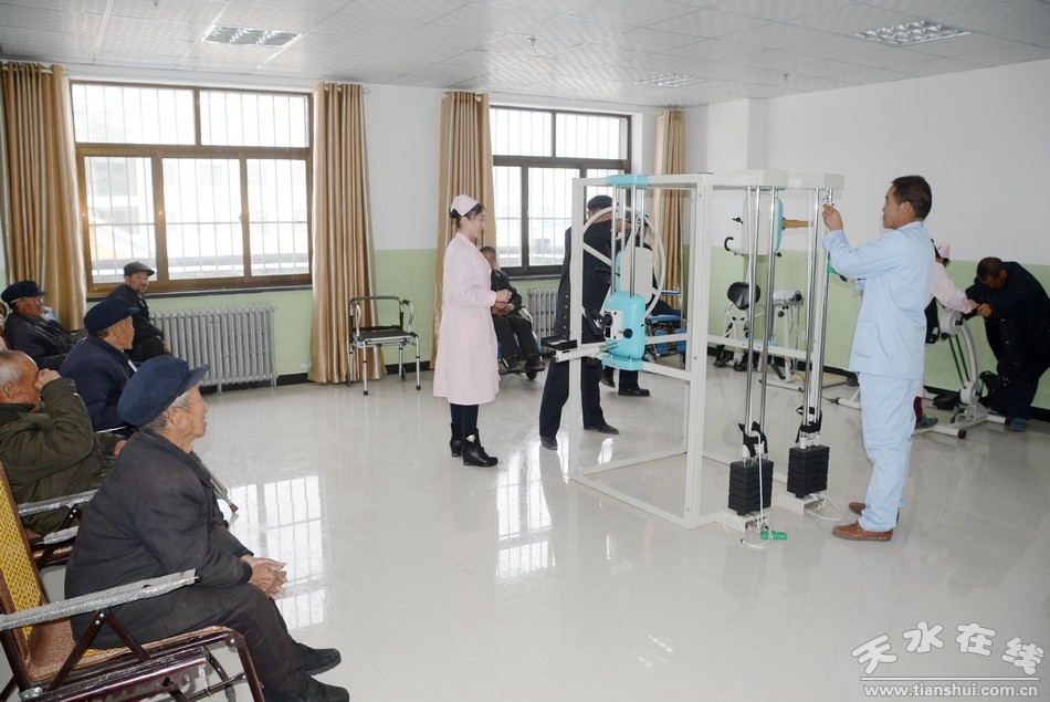 近年來,清水縣投資2000余萬元興建了老年護(hù)理院,位于清水縣祝英臺(tái)大道,占地6000多平米,建筑面積4000余平米,有養(yǎng)老床位104張,養(yǎng)護(hù)院以養(yǎng)老、護(hù)理和康復(fù)治療相結(jié)合,內(nèi)設(shè)棋牌室、書畫閱覽室、活動(dòng)室、多功能會(huì)議室、康復(fù)室、理療室、推拿按摩室等。