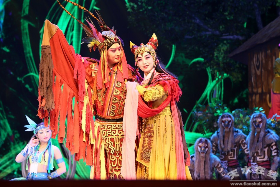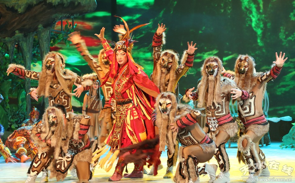 第一場(chǎng):軒轅出生在清水軒轅丘,參加氏族部落比武大賽脫穎而出,拒絕了美麗的雨師,與一見鐘情的西陵氏少女嫘祖結(jié)成姻緣。