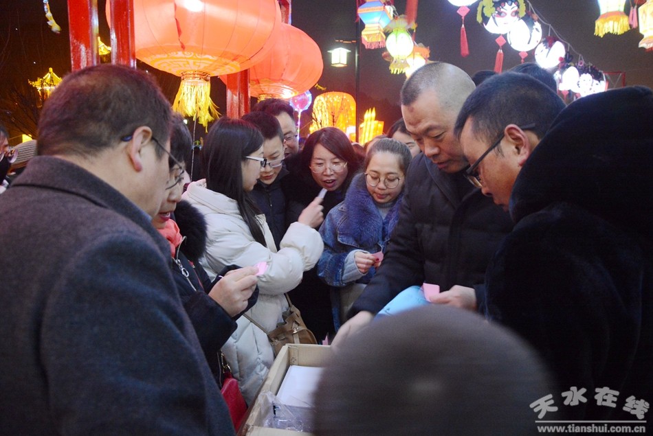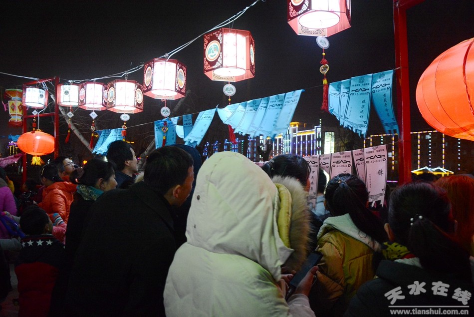 猜燈謎活動(dòng)是清水人過(guò)元宵節(jié)時(shí)的一項(xiàng)文化娛樂(lè)盛宴,自古以來(lái)有“觀燈猜謎”的習(xí)俗,是一種鍛煉思維、啟發(fā)性靈的益智文化娛樂(lè)活動(dòng)。今年的元宵節(jié)賞花燈猜燈謎也是元宵節(jié)系列活動(dòng)的重頭戲,市民們?cè)缭绲膩?lái)到軒轅湖賞花燈,猜燈謎,熱熱鬧鬧的共慶元宵佳節(jié)。