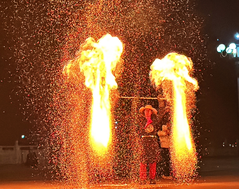 漫天繽紛的“鐵花雨”,是傳承千年的中式浪漫。現(xiàn)代打鐵花表演在對(duì)古老技藝傳承的基礎(chǔ)上進(jìn)行創(chuàng)新,不僅精心設(shè)計(jì)的燈光和音響效果,還增強(qiáng)了現(xiàn)場(chǎng)的沉浸感和體驗(yàn)感,將打鐵花的視覺(jué)效果發(fā)揮到極致。變幻莫測(cè)、驚艷絕倫的鐵花美景,給清水的夜晚增加了璀璨的色彩。