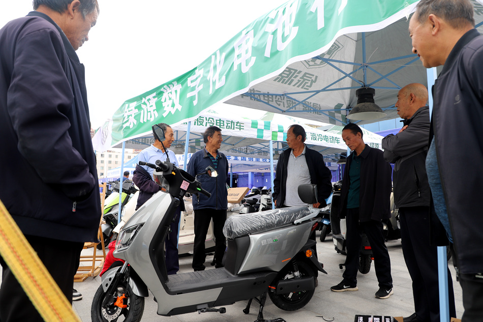 在綠源電動(dòng)車(chē)展區(qū)前,銷(xiāo)售人員熱情地為前來(lái)咨詢(xún)的顧客介紹“以舊換新”及補(bǔ)貼政策,并現(xiàn)場(chǎng)安裝輪胎,測(cè)試防水性能、電池等,不少顧客當(dāng)場(chǎng)購(gòu)買(mǎi)“愛(ài)車(chē)”,簽訂銷(xiāo)售協(xié)議。