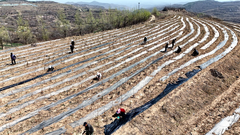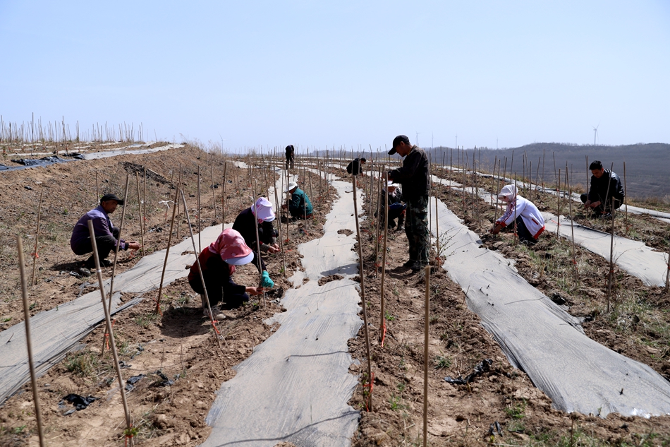 走進松樹鎮(zhèn)代王村千畝藥材種植基地,放眼望去,一排排整齊的金銀花長勢喜人,一株株連翹樹迎風(fēng)矗立于山林間,金黃的花朵,密密匝匝地簇擁在一起,農(nóng)戶們穿梭在各個地頭進行鋤草、覆膜、修剪等管護作業(yè),勾勒出一幅生機勃勃“春耕圖”。