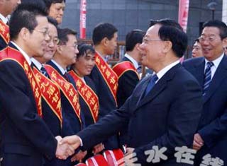 省人大常委會副主任、省總工會主席孫效東與天水市委常委、副市長柴金祥為新工業(yè)園揭牌