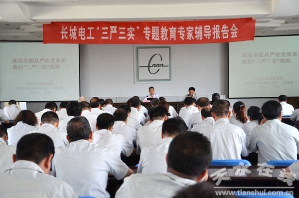 長(zhǎng)城電工黨委認(rèn)真推進(jìn)落實(shí)《長(zhǎng)城電工“三嚴(yán)三實(shí)”專題教育方案》,于6月18日在天水舉辦了“三嚴(yán)三實(shí)”專題教育黨課專家輔導(dǎo)報(bào)告會(huì)。
