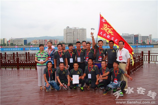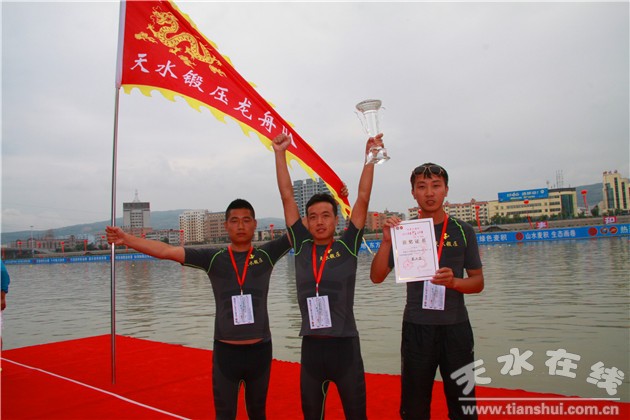 8月8日,從麥積區(qū)翠湖舉行的“百花小鎮(zhèn)杯”2015年中國(guó)龍舟公開賽(甘肅·天水·麥積站)現(xiàn)場(chǎng)傳來(lái)消息,天水鍛壓龍舟隊(duì)榮獲天水本地組綜合成績(jī)第三名的好成績(jī),甘肅省政協(xié)副主席張津梁、天水市委副書記市長(zhǎng)楊維俊為他們頒發(fā)了獎(jiǎng)杯和榮譽(yù)證書,并獲得1.5萬(wàn)元的獎(jiǎng)金。天水鍛壓龍舟隊(duì)同時(shí)在200米直道賽、500米直道賽單項(xiàng)決賽中分別獲得第四名和第三名的好成績(jī)。