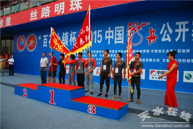“百花小鎮(zhèn)杯”2015年中國(guó)龍舟公開賽(甘肅·天水·麥積站)有來(lái)自湖北、湖南、陜西、福建、廣東、四川、江蘇、甘肅等8省的12支代表隊(duì)和天水本地麥積、甘谷、武山、秦安、清水、張川等縣區(qū)及企事業(yè)單位天水鍛壓等11支代表隊(duì),分別在公開組和本地組展開激烈角逐。