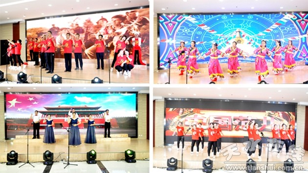 文藝匯演以“紅歌聯(lián)唱”為主要表現(xiàn)形式,穿插舞蹈、朗誦等,精彩紛呈。氣勢(shì)磅礴的舞蹈《紅色記憶》拉開了文藝匯演的序幕。一幀幀恢弘的背景,合著雄壯的樂曲,伴著舞動(dòng)的紅綢緞,以強(qiáng)烈的情感沖擊力和舞臺(tái)張力再現(xiàn)各個(gè)歷史時(shí)期發(fā)生的代表性黨史事件,頃刻讓人熱血沸騰。隨后,《沒有共產(chǎn)黨就沒有新中國(guó)》《中國(guó),中國(guó),鮮紅的太陽永不落》《保衛(wèi)黃河》《走向復(fù)興》等經(jīng)典紅歌曲目輪番上陣,《燈火里的中國(guó)》《再唱山歌給黨聽》《中國(guó)范兒》等深情與活力兼具的舞蹈燃爆全場(chǎng),更有經(jīng)典串燒、詩歌誦讀穿插在聯(lián)唱當(dāng)中,創(chuàng)新了“紅歌演唱”方式,助推了文藝匯演的氛圍。整個(gè)演出過程,掌聲雷動(dòng),紅旗舞動(dòng),笑聲跌宕,大家都沉浸在慶祝中國(guó)共產(chǎn)黨成立100周年的歡快氣氛里。最后,文藝匯演在《我和我的祖國(guó)》的全場(chǎng)大合唱中圓滿結(jié)束。