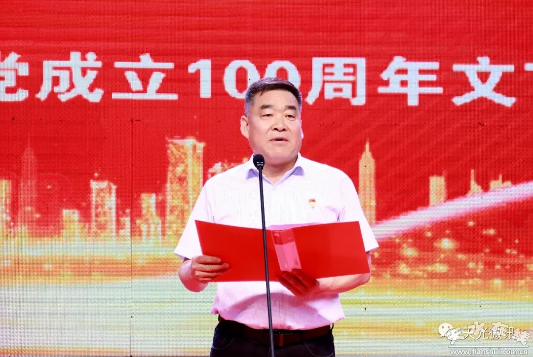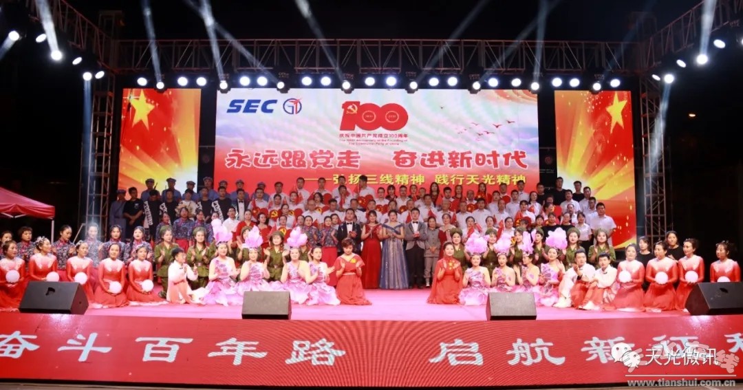 歲月不居,華章日新。在偉大的中國(guó)共產(chǎn)黨百年華誕即將到來(lái)之際,為了全面落實(shí)黨史學(xué)習(xí)教育,推動(dòng)全體黨員職工守護(hù)紅色根脈、奮力爭(zhēng)先創(chuàng)優(yōu),讓廣大黨員職工在學(xué)習(xí)黨史中汲取奮進(jìn)力量,全面開(kāi)啟新局。6月26日,天光公司在天光小區(qū)舉辦“永遠(yuǎn)跟黨走、奮進(jìn)新時(shí)代”慶祝中國(guó)共產(chǎn)黨成立100周年文藝匯演。公司黨委書(shū)記、董事長(zhǎng)盧宇出席活動(dòng)并講話,黨委副書(shū)記、總經(jīng)理蒲耀川宣讀了“提兩氣、促兩轉(zhuǎn)”勞動(dòng)競(jìng)賽獲獎(jiǎng)名單,并現(xiàn)場(chǎng)對(duì)獲獎(jiǎng)人員進(jìn)行表彰獎(jiǎng)勵(lì)。