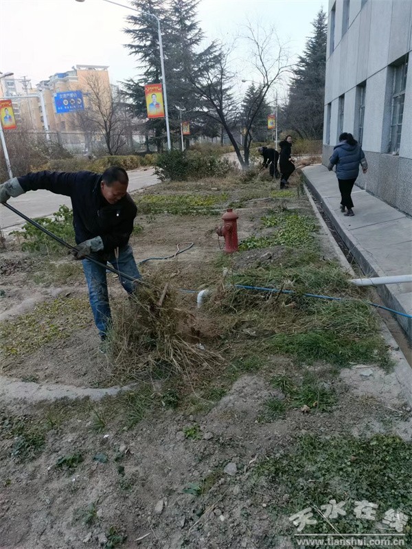 在這次整治工作中,大家冒著寒冷,用鐵鍬鏟、笤帚掃、小車拉,清理了各自衛(wèi)生責任區(qū)內(nèi)散落的樹葉、塑料袋、碎紙屑等,清理了花園中干枯的落葉、樹枝及白色垃圾,清掃了地面,并對垃圾進行了分類整理,消除了潛在的火災隱患。
