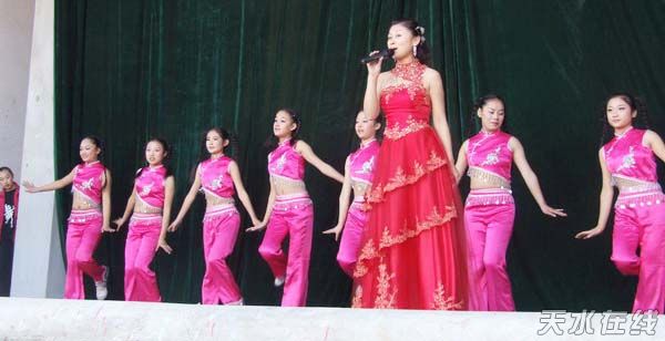 慰問演出的天水市歌舞團(tuán)是一支擁有較高水平的演員隊(duì)伍,有著雄厚的群眾基礎(chǔ)。他們?yōu)榍貛X鄉(xiāng)的老百姓獻(xiàn)出了20多個(gè)精彩絕倫的文藝節(jié)目,優(yōu)美的舞姿、嘹亮的歌聲迎來群眾的陣陣掌聲。他們精彩的演出為廣大農(nóng)民朋友們送上一道豐盛的精神文化大餐!