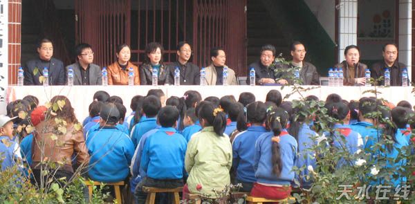 同時,大門鄉(xiāng)中心小學里整齊的坐滿了全校師生和附近的村民,市關工委報告團副團長郭錦堂為同學們做了一場題為《熱愛祖國從我做起》的報告,精彩的報告贏得了陣陣掌聲。團區(qū)委和區(qū)婦聯(lián)現場向大門鄉(xiāng)中心小學捐贈學校所需的教育教學設備和同學們需要的文化用品價值達8000余元,最后團市委副書記牛新虎寄予全體同學們要珍惜學習機會將來為祖國和家鄉(xiāng)的建設貢獻自己的才智和力量。