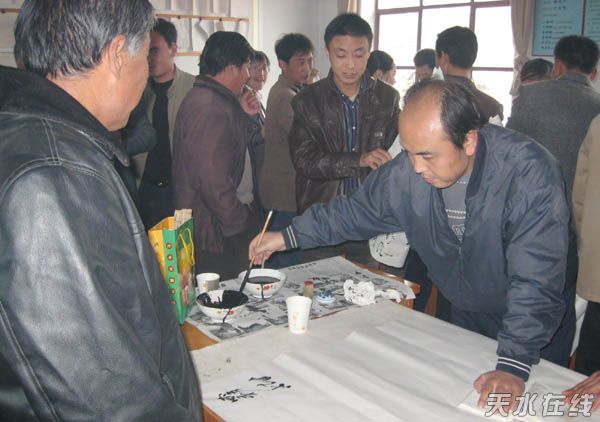 為了貫徹共青團十六大精神,大力推進青年志愿者服務基層工作,11月4日由共青團秦州區(qū)委牽頭聯(lián)合區(qū)婦聯(lián)、區(qū)關工委等部門,組織秦州區(qū)青年書畫家以及醫(yī)療衛(wèi)生志愿服務小分隊50多人深入大門鄉(xiāng)開展秦州區(qū)青年志愿者“三下鄉(xiāng)”奉獻愛心活動,得到大門鄉(xiāng)廣大干部群眾的熱烈歡迎。