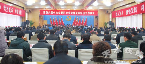 。ㄇ刂輩^(qū)委宣傳部 高彥堂)2010年元月5日,秦州區(qū)召開區(qū)委六屆十次全委擴(kuò)大會議暨全區(qū)經(jīng)濟(jì)工作會議,主要任務(wù)是貫徹中央、全省經(jīng)濟(jì)工作會議和市委五屆九次全委擴(kuò)大會議暨全市經(jīng)濟(jì)工作會議精神,回顧總結(jié)去年以來的工作,安排部署2010年工作任務(wù)。