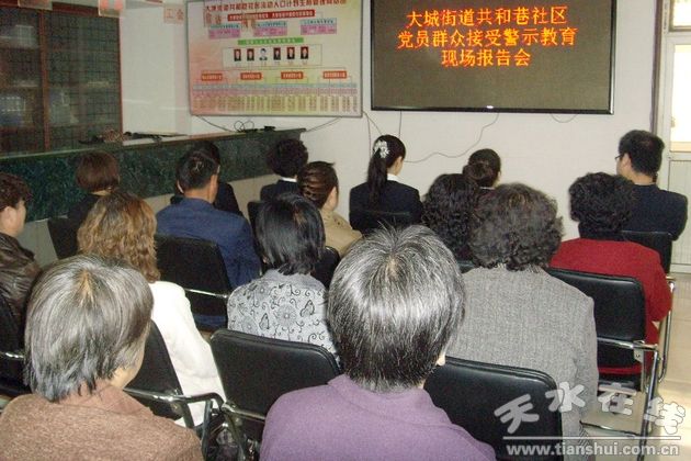 按照秦州區(qū)委及街道黨工委反腐倡廉“警示教育周”活動(dòng)的安排,4月22日上午,大城街道共和巷社區(qū)黨總支組織全體黨員干部和部分居民群眾百余人認(rèn)真觀看了警示教育片《小官大腐 》。