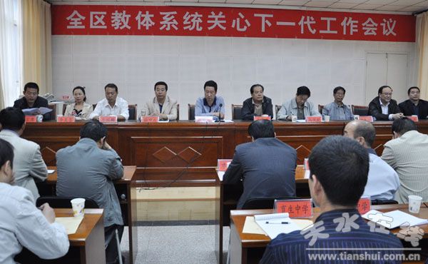 區(qū)關(guān)工委主任馬佩授,區(qū)關(guān)工委副主任于學武、田永祥、區(qū)委組織部副部長、區(qū)老干局局長伏承祥,區(qū)老干局副局長、關(guān)工辦主任牛瑞麟,區(qū)教體局領(lǐng)導(dǎo)班子全體成員及全區(qū)各中小學校長、幼兒園園長、教體局有關(guān)股室共80多人參加會議,區(qū)教體局局長張瑞潔主持會議。會議總結(jié)了秦州區(qū)教體系統(tǒng)關(guān)工委2010年工作,部署了2011年工作,羅玉中學和解一小學作了大會交流發(fā)言。