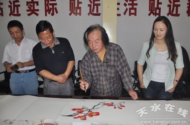 (圖為秦州區(qū)美協(xié)名譽(yù)主席楊蔭濃現(xiàn)場(chǎng)創(chuàng)作)