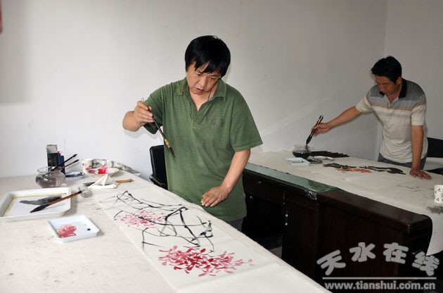 (圖為天水市美協(xié)副主席、秦州區(qū)文化館館長(zhǎng)趙暉現(xiàn)場(chǎng)創(chuàng)作 )