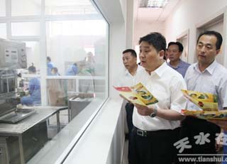 周繼軍一行先后深入天水天綠食品有限公司、興隆糧庫、牡丹糧庫和太京糧庫等地,查看了糧油儲備、天綠公司罐裝油生產(chǎn)線、食品加工、成品糧油供應(yīng)和糧庫建設(shè)等情況,聽取了相關(guān)情況匯報。同時,周繼軍還在調(diào)研中查看了牡丹鎮(zhèn)小城鎮(zhèn)建設(shè)。
