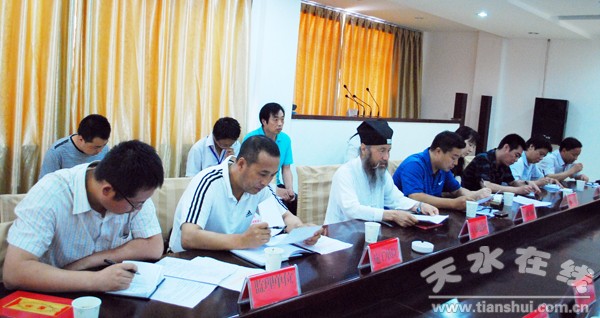 。ㄇ刂輩^(qū)外宣辦 辛志鋒)7月18日下午,秦州區(qū)召開玉泉觀古建筑維修保護工程領(lǐng)導小組會議。區(qū)委常委、政府副區(qū)長武建成,政府副區(qū)長任佩光、市文化文物出版局文物科科長楊曉紅及區(qū)政府辦、文廣局、宗教局、住建局、旅游局、房管局、監(jiān)察局、中城辦事處、玉泉觀文保所、玉泉觀道協(xié)、河南古建所規(guī)劃部、設(shè)計部,施工單位河南龍源古建園林公司,施工監(jiān)理單位甘肅經(jīng)緯監(jiān)理公司等單位負責人參加會議。會議由區(qū)政府辦公室副主任、督查室主任劉小奎主持。區(qū)委常委、政府副區(qū)長武建成作了講話。