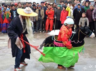 熊熊燃燒的焰火、優(yōu)美動(dòng)人的旋律、發(fā)自內(nèi)心的歌聲,在村莊里回蕩著,雖然天氣寒冷,但這絲毫沒有影響到演員和觀眾的熱情!斑M(jìn)狀元”、“轉(zhuǎn)娘家”等節(jié)目輪番上演,為節(jié)日期間的群眾送上了精彩的文化“美味”。