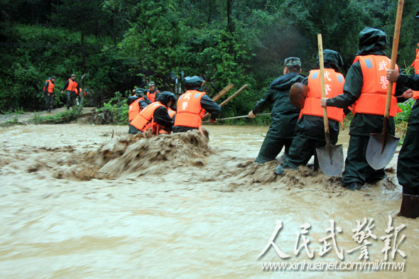 “請(qǐng)武警官兵迅速出動(dòng),災(zāi)區(qū)泥石流已有人員傷亡和失蹤!”災(zāi)區(qū)告急!救援官兵采取“邊行動(dòng)邊報(bào)告”的特殊用兵模式,25日早晨8時(shí)集結(jié)完畢,9時(shí)20分便摩托化到達(dá)45公里外的娘娘壩鎮(zhèn)郭家鞍子,為搶險(xiǎn)救災(zāi)贏得了先機(jī)。