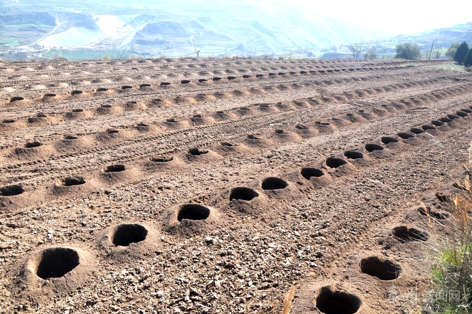 11月初,記者在玉泉鎮(zhèn)王家坪村、四方堡村、楊何村處處可見農(nóng)忙的身影,伴隨著機器的轟鳴,挖坑機在已開墾過的土地上挖出一排排整齊的樹坑。機器旁干活的村民告訴記者,原來栽樹挖坑都是靠人工,費力又費時,現(xiàn)在挖坑機代替了部分勞動力,機器在拖拉機的牽引下按照提前劃好的區(qū)域工作,不到半分鐘一個標(biāo)準(zhǔn)樹坑就挖好了。記者在山坡上俯視可以看到,數(shù)千個樹坑沿山形整齊排列,既美觀又科學(xué)。