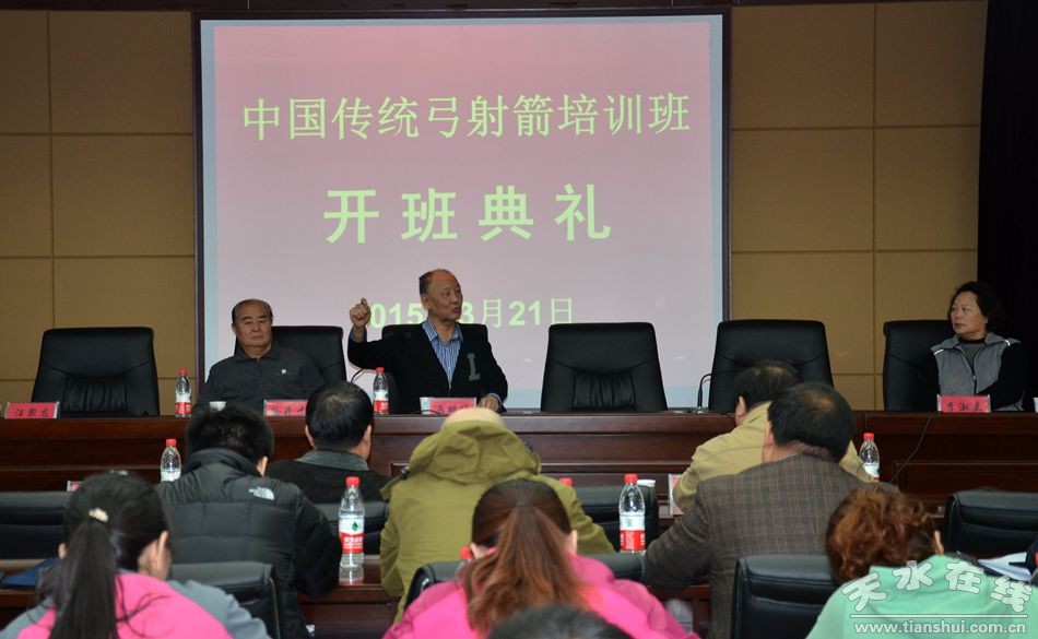 培訓會上,著名歷史學家,中國武術名家馬明達講話說:天水是隴上擁有豐富歷史文化資源的古城,歷史上相當長的時期內(nèi)是一個文武文化發(fā)展比較均衡的地方。天水是李廣的故鄉(xiāng),李廣長臂善射,其保家衛(wèi)國的高尚情懷被千古傳頌,也是中國式射箭的標志性人物。天水又是關天經(jīng)濟區(qū)重要城市和一路一帶重要節(jié)點城市,交通便捷,天水上下對發(fā)展中國傳統(tǒng)弓箭運動十分重視,開展中國傳統(tǒng)弓箭運動得天獨厚,因此選擇將這次培訓放在天水舉行,這在全國也應該是首次舉行。今后將進一步在天水打造傳統(tǒng)弓箭運動的文化品牌,在天水舉行“李廣杯”世界射箭錦標賽,并將它打造成固定的國際性體育賽事。還將在天水開展綜合性的射文化活動,打造射文化框架和文化體系,逐步恢復和發(fā)展傳統(tǒng)文化。