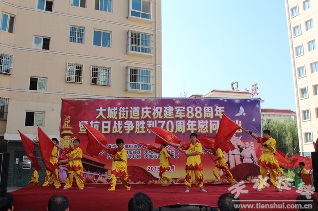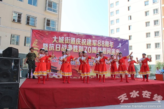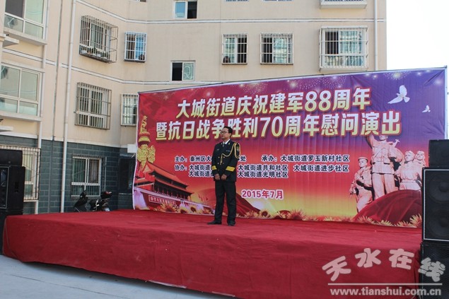 在中國人民解放軍88周年即將來臨之際暨抗戰(zhàn)勝利70周年。7月28日上午,大城街道辦事處隆重舉行軍民聯(lián)歡文藝演出,全體軍休人員歡聚一堂,載歌載舞,同慶“八一”建軍節(jié),共敘軍民魚水情。