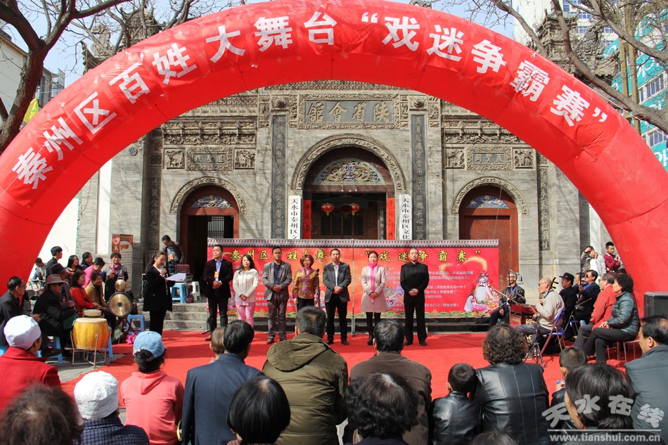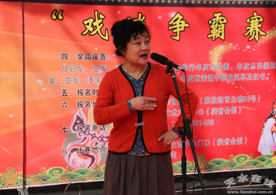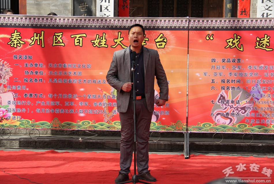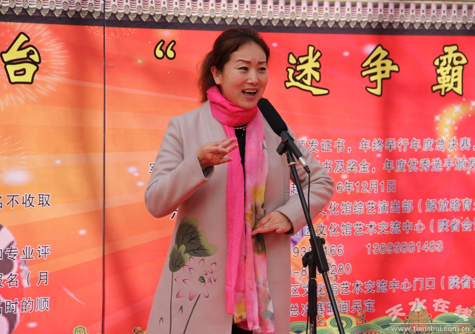 3月13日下午,由天水市秦州區(qū)文化館、天水戲劇家協(xié)會(huì)主辦,天水樂天藝術(shù)團(tuán)協(xié)辦的秦州區(qū)百姓大舞臺(tái)戲迷爭霸賽拉開了帷幕。大賽啟動(dòng)儀式還邀請了中國四小名旦、天水戲劇家協(xié)會(huì)主席、天水西秦腔研究院副院長袁丫丫女士,天水戲劇家協(xié)會(huì)秘書長、天水西秦腔研究院國家二級(jí)演員劉維新先生,天水西秦腔研究院著名老旦演員秋玲娟女士,天水西秦腔研究院著名演員張?jiān)迄i先生作為嘉賓為廣大戲迷朋友奉獻(xiàn)了精彩的演出。