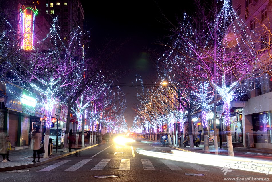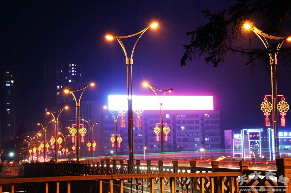 同時,為了給市民的夜生活提升營造一個溫馨明亮的氛圍,住建局市政處以一條河(藉河沿河橋梁)、兩入口(七里墩秦麥高速路口、天定高速赤峪路)、十個主要街區(qū)(大眾路、民主路、建設(shè)路、藉河北路、藉河南路、青年北路、青年南路、赤峪路、泰山路、天河廣場)為重點亮化美化區(qū)域,安裝、懸掛大紅燈籠、禮花造型燈飾、LED串串燈、多彩流星雨等型式新穎的亮化設(shè)施,同時對城區(qū)主要古樹、景區(qū)景點、公園游園等進行節(jié)點亮化, 搭配、烘托城區(qū)主要街道兩側(cè)高層建筑物樓體亮化和景觀路燈設(shè)施。住建局園林處對人民公園整體進行亮化,對園內(nèi)中山亭、座椅、樹木亮化為點綴,突出區(qū)域亮化特點和燈飾差別,形成多層次、立體化的景觀效果,使今年春節(jié)亮化暨節(jié)日氛圍營造達到亮化效果突出,整體氛圍濃郁的良好效果。