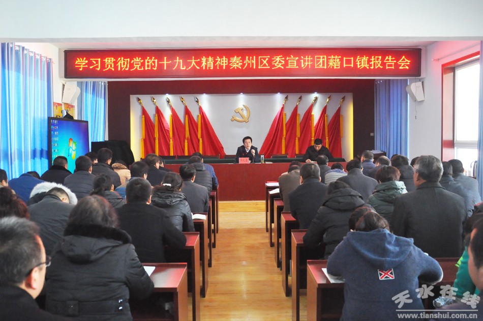 。ㄇ刂輩^(qū)外宣辦 辛恬)12月5日,學(xué)習(xí)宣傳貫徹黨的十九大精神區(qū)委宣講團(tuán)藉口鎮(zhèn)報(bào)告會舉行。區(qū)委副書記、區(qū)長、學(xué)習(xí)貫徹黨的十九大精神區(qū)委宣講團(tuán)成員劉文璽為全鎮(zhèn)黨員干部作宣講輔導(dǎo)。他強(qiáng)調(diào),要準(zhǔn)確把握十九大關(guān)于經(jīng)濟(jì)社會發(fā)展和黨的建設(shè)的新部署、新要求,堅(jiān)持原原本本、原汁原味,入腦入心入行,實(shí)施好鄉(xiāng)村振興戰(zhàn)略,把老百姓對美好生活的向往作為最大追求,堅(jiān)定不移跟黨走,擼起袖子加油干,讓老百姓有更多的獲得感、幸福感、安全感。