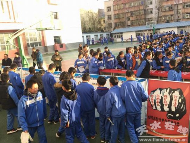 活動現(xiàn)場采取懸掛橫幅、展板展覽、發(fā)放宣傳資料、簽訂承諾書等形式向廣大師生宣傳有關(guān)知識。在石馬坪中學(xué)操場上的懸掛著宣傳橫幅,40塊宣傳展板涉及禁毒、反邪教、安全、打擊傳銷、防電信詐騙等相關(guān)內(nèi)容,吸引眾多師生駐足觀看。同時,同學(xué)們紛紛在承諾書上簽上自己的名字,并鄭重承諾:“珍愛生命、拒絕毒品、反對邪教、遠離傳銷”。